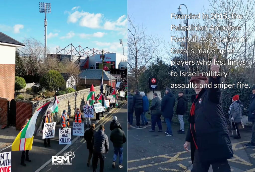 Big up to any Cherries fans that took part in the huge demonstration outside the AFC Bournemouth ground last year. > Palestine Solidarity Movement’s Insta post