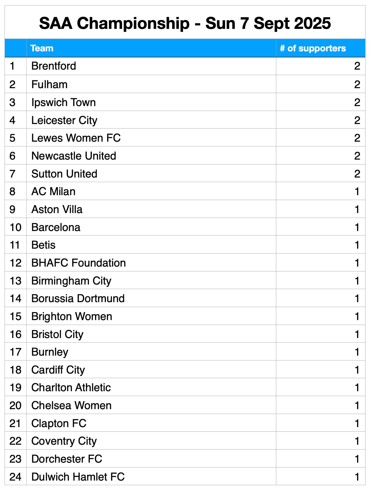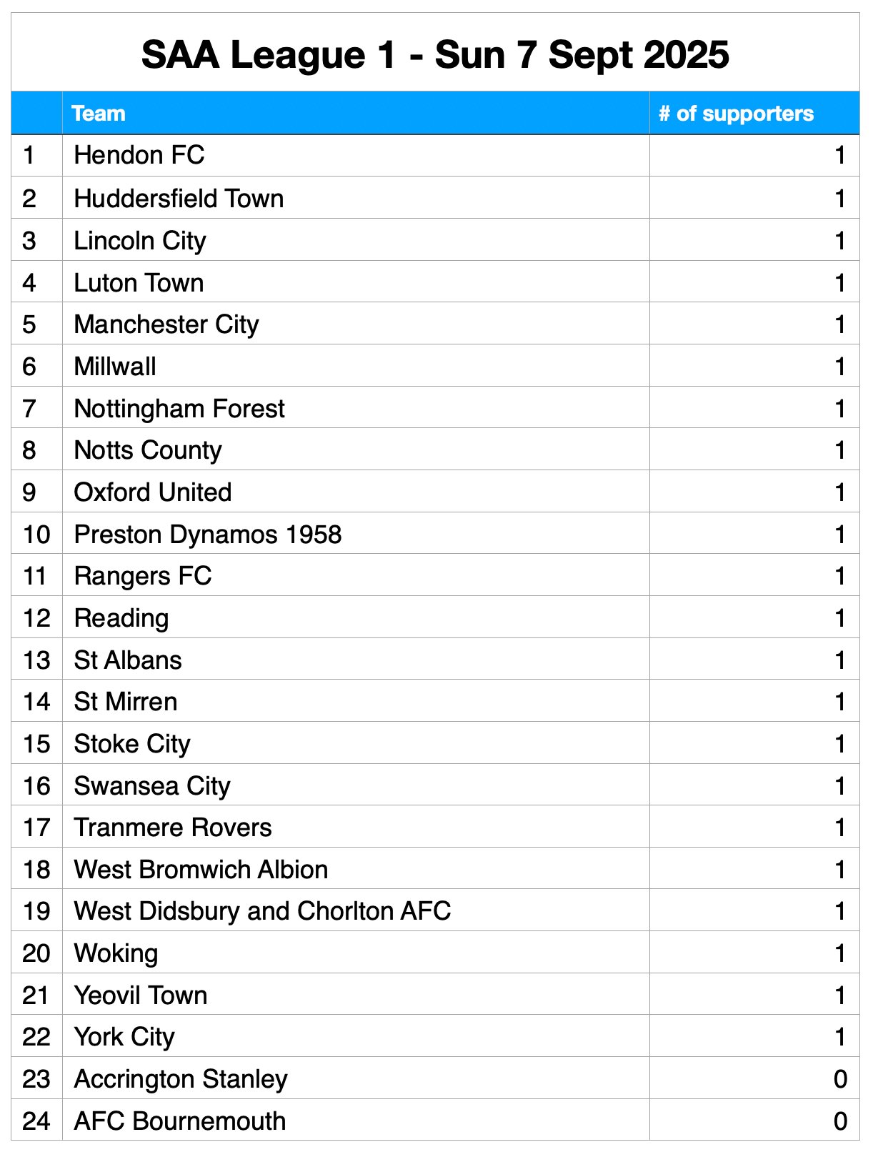 It’s no surprise to see BHAFC supporters at the top of the pile – with a healthy lead. But what of other supporters’ club affiliations? Who makes the Top 6, who’s comfortably in mid-table, and who is in danger of dropping down to the Championship?*